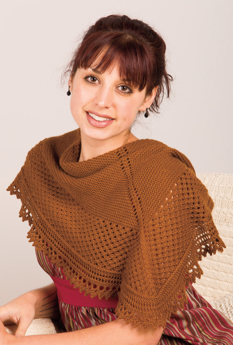 For the attached edging option of this design, I chose to work in a solid color luxurious yarn, Knitpicks Capretta, a merino and cashmere blend in a rich dark brown color. I truly loved working with this yarn and I dream about wrapping my neck in this amazing softness!